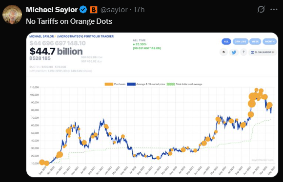 비트코인을 매입하는 데 있어서 관세전쟁의 영향이 없다는 뜻과